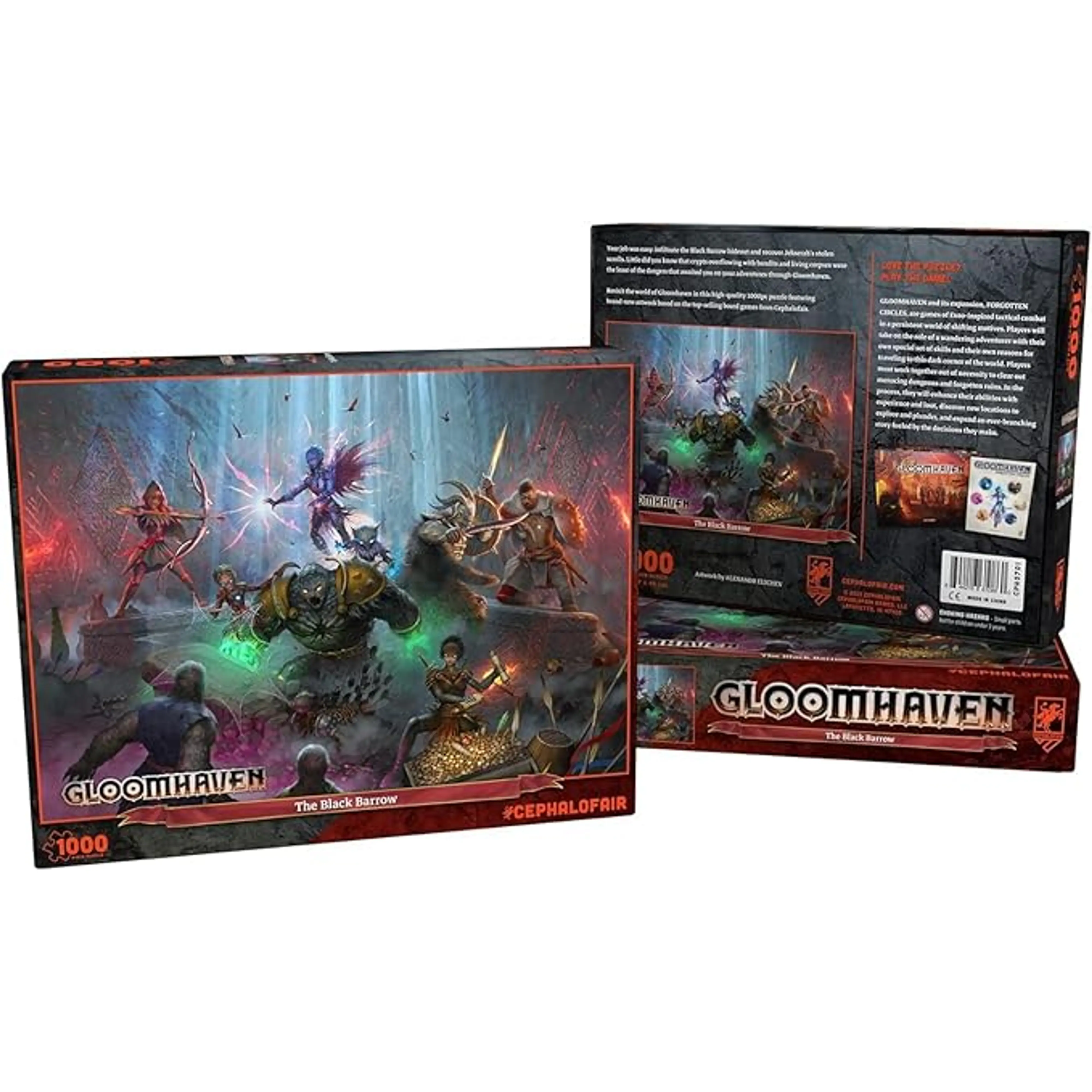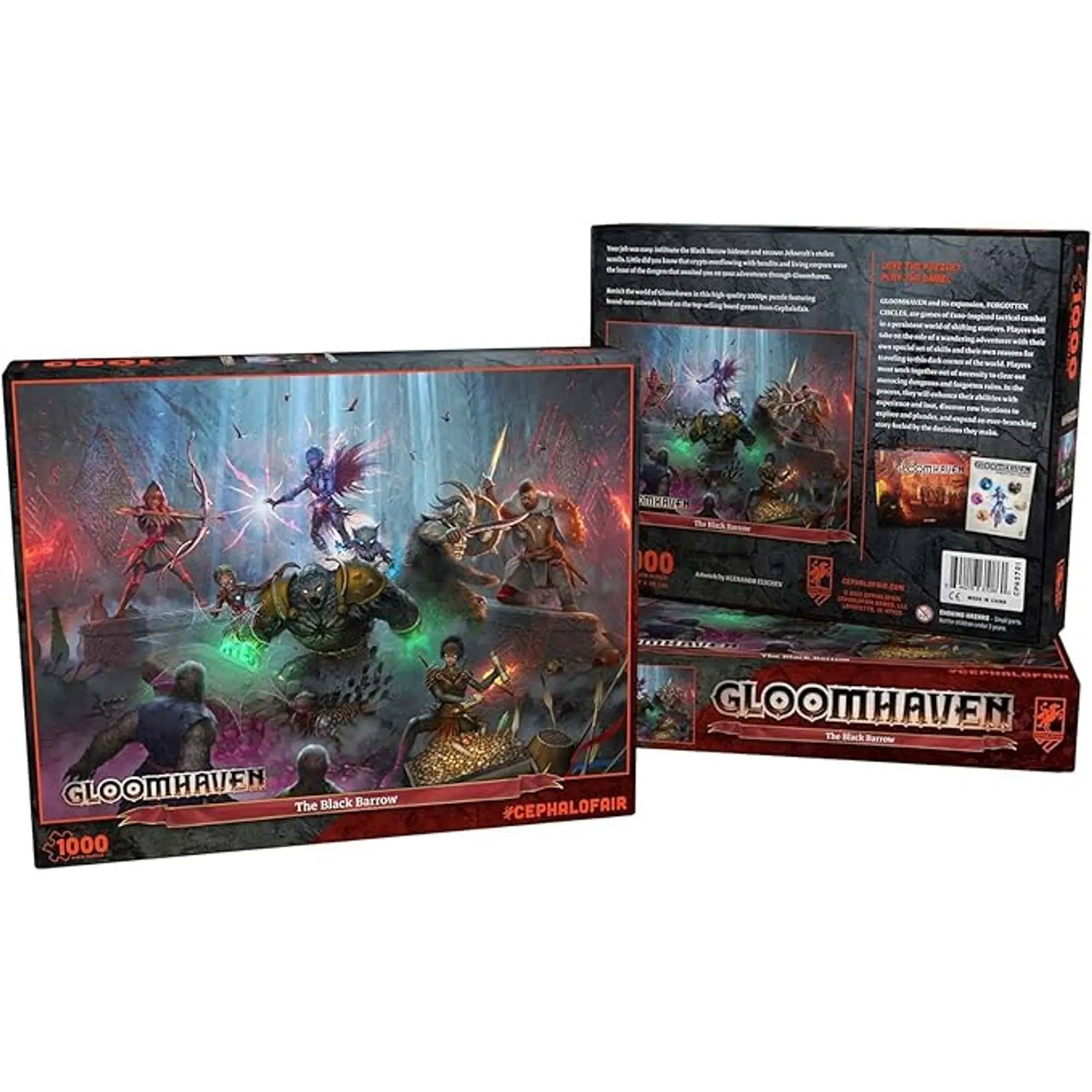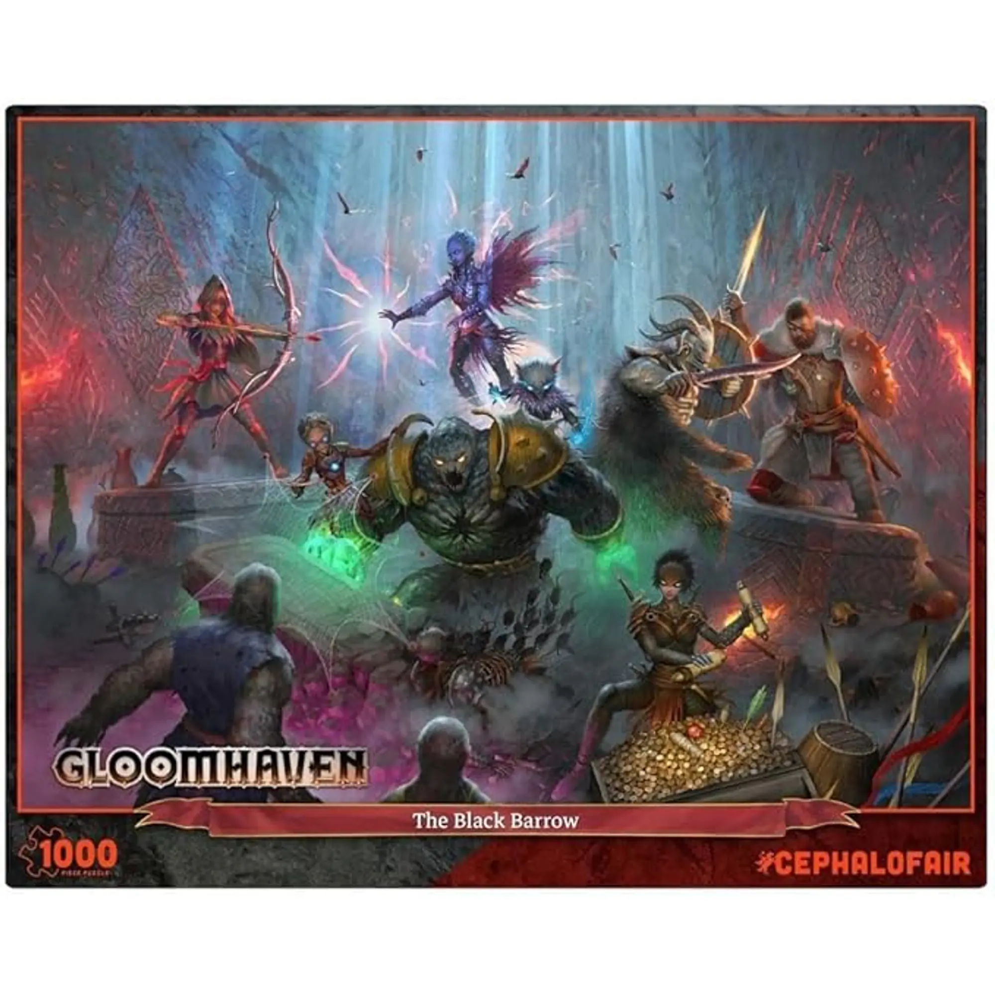 - Gloomhaven: The Black Barrow – Puzzle (1000 kosov) je visokokakovostna sestavljanka, ki temelji na priljubljeni družabni igri Gloomhaven. Gre za uradni izdelek založbe Cephalofair Games, namenjen ljubiteljem igre in tistim, ki uživajo v sestavljanju zahtevnejših motivov.