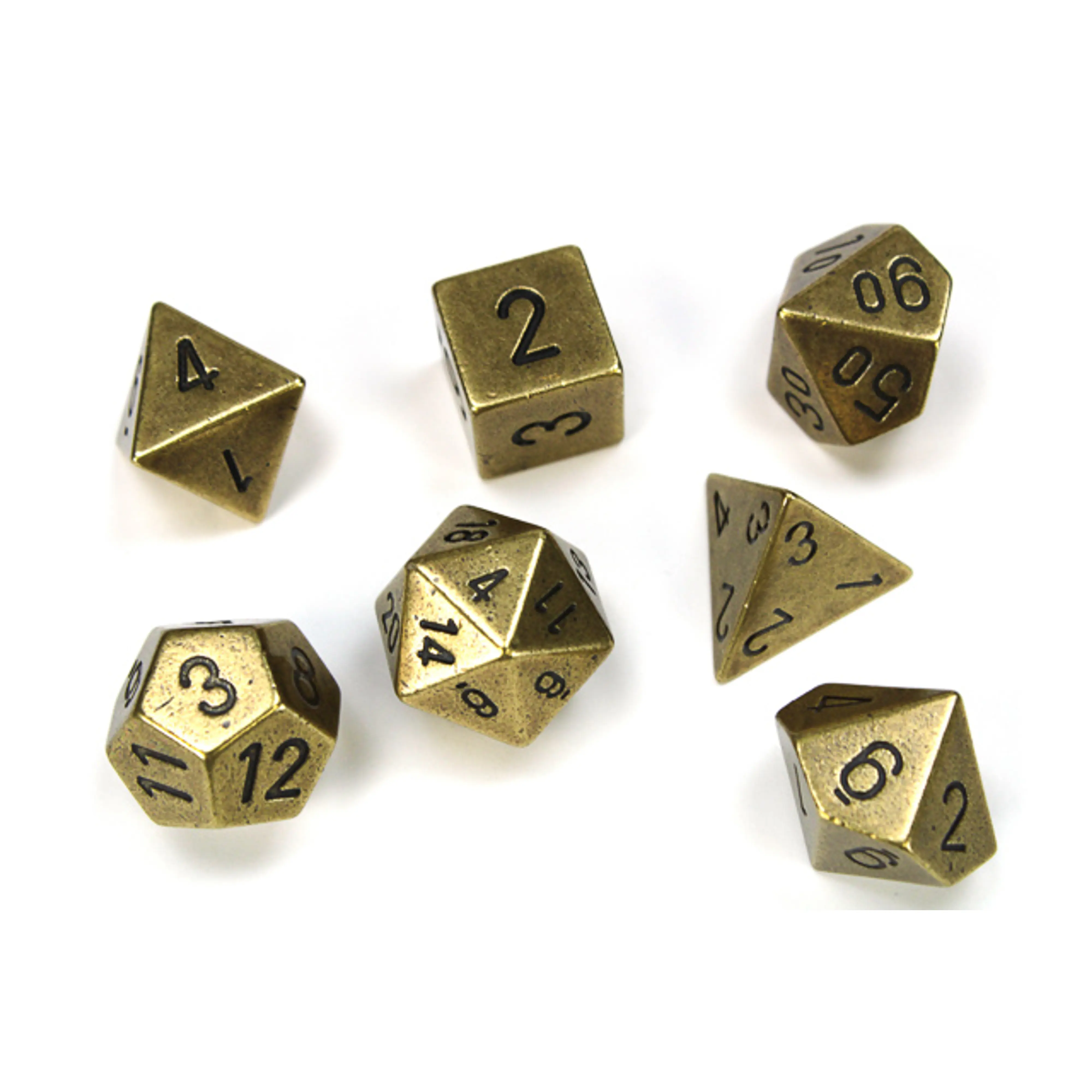 Metal Polyhedral Old Brass 7-Dice Set - Gold