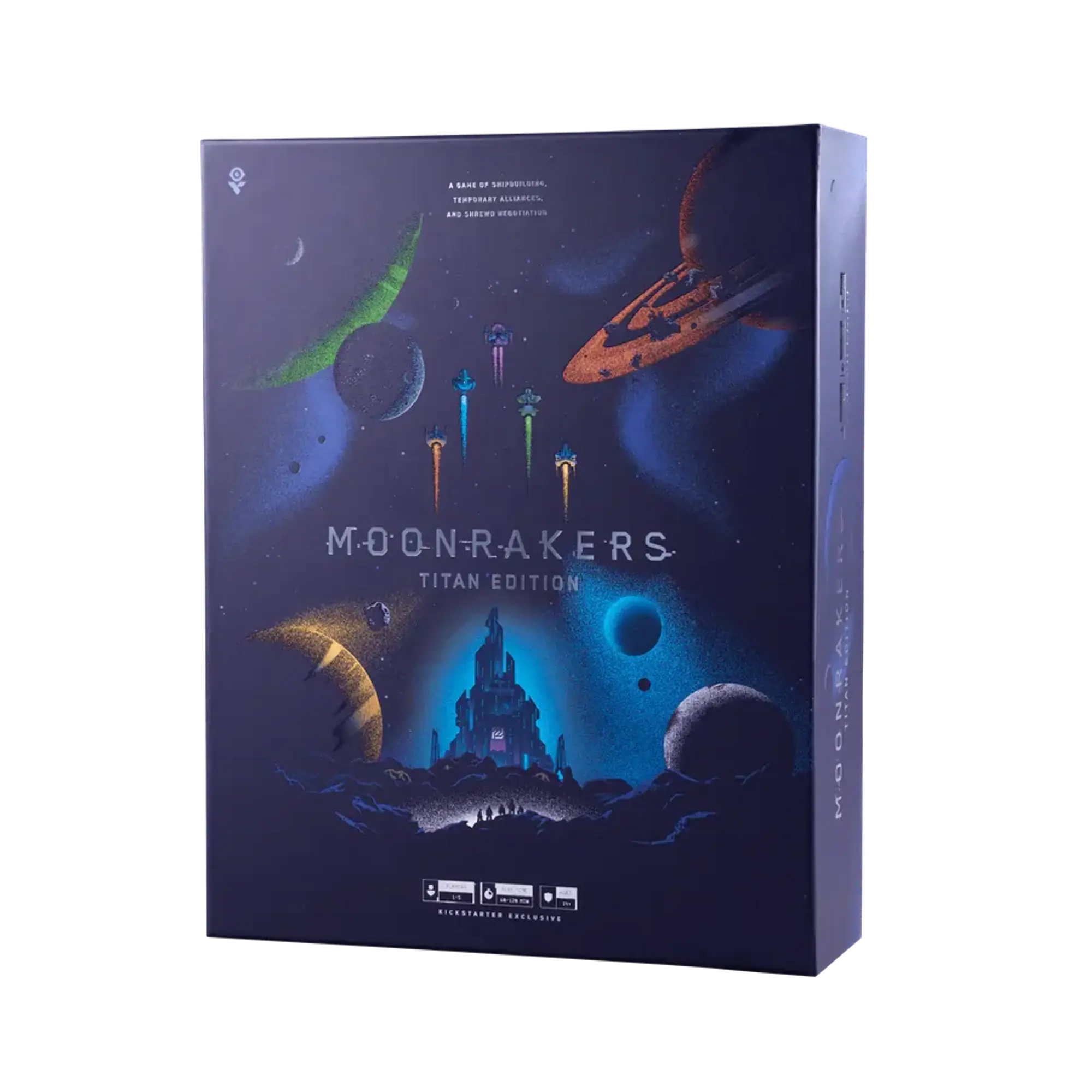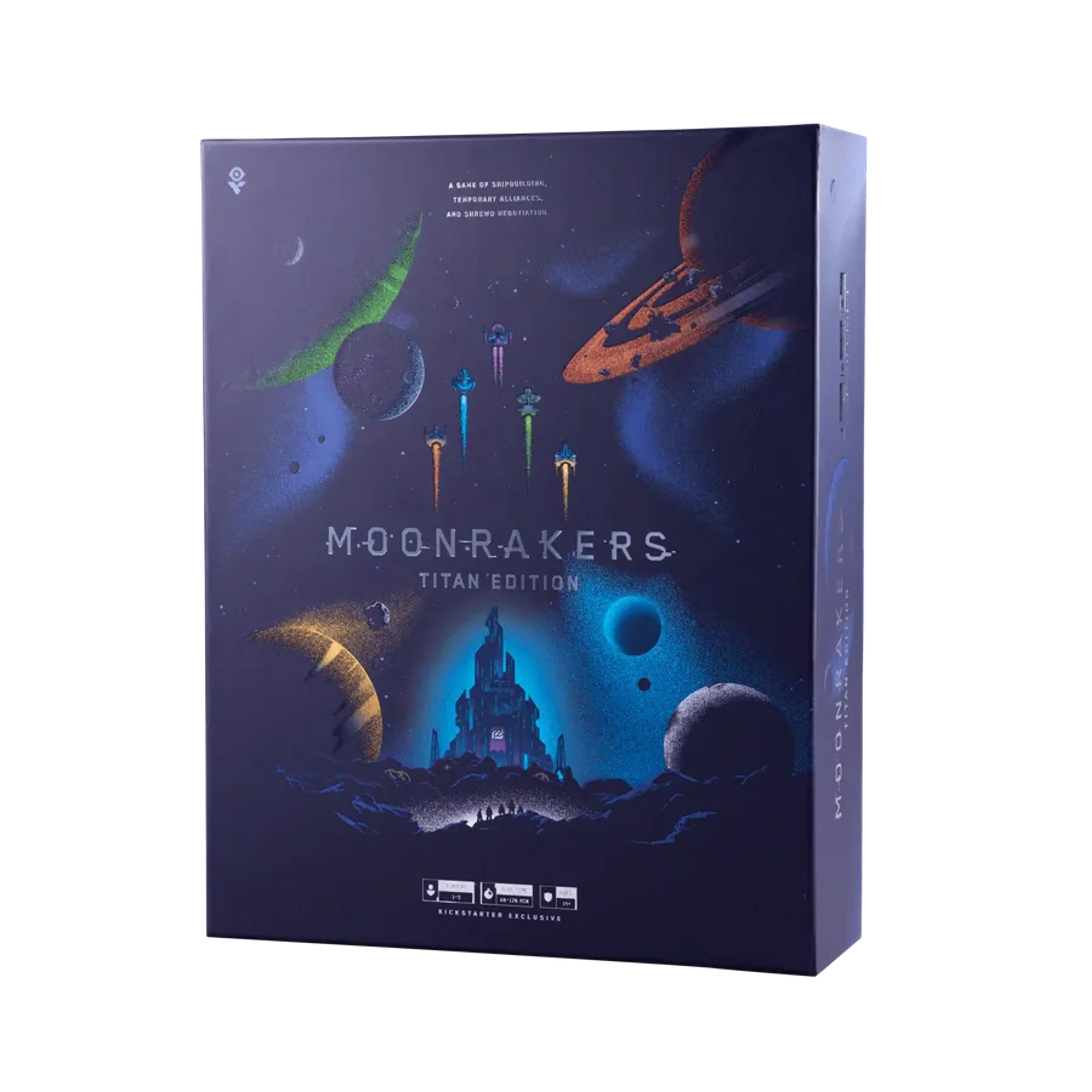 Moonrakers: Titan Edition te popelje v futuristični svet vesoljskih plačancev, kjer se igralci potegujejo za prestiž in bogastvo. Dogajanje je postavljeno v galaksijo, polno nevarnih pogodb, začasnih zavezništev in napetih pogajanj. Titan Edition združuje osnovno igro in več razširitev (Binding Ties, Overload, Nomad), kar pomeni še več možnosti za raziskovanje, nadgradnje ladij in strateško sodelovanje. Vizualno igra izstopa z minimalističnimi, elegantnimi vesoljskimi motivi, ki ustvarjajo občutek raziskovanja neznanega vesolja.