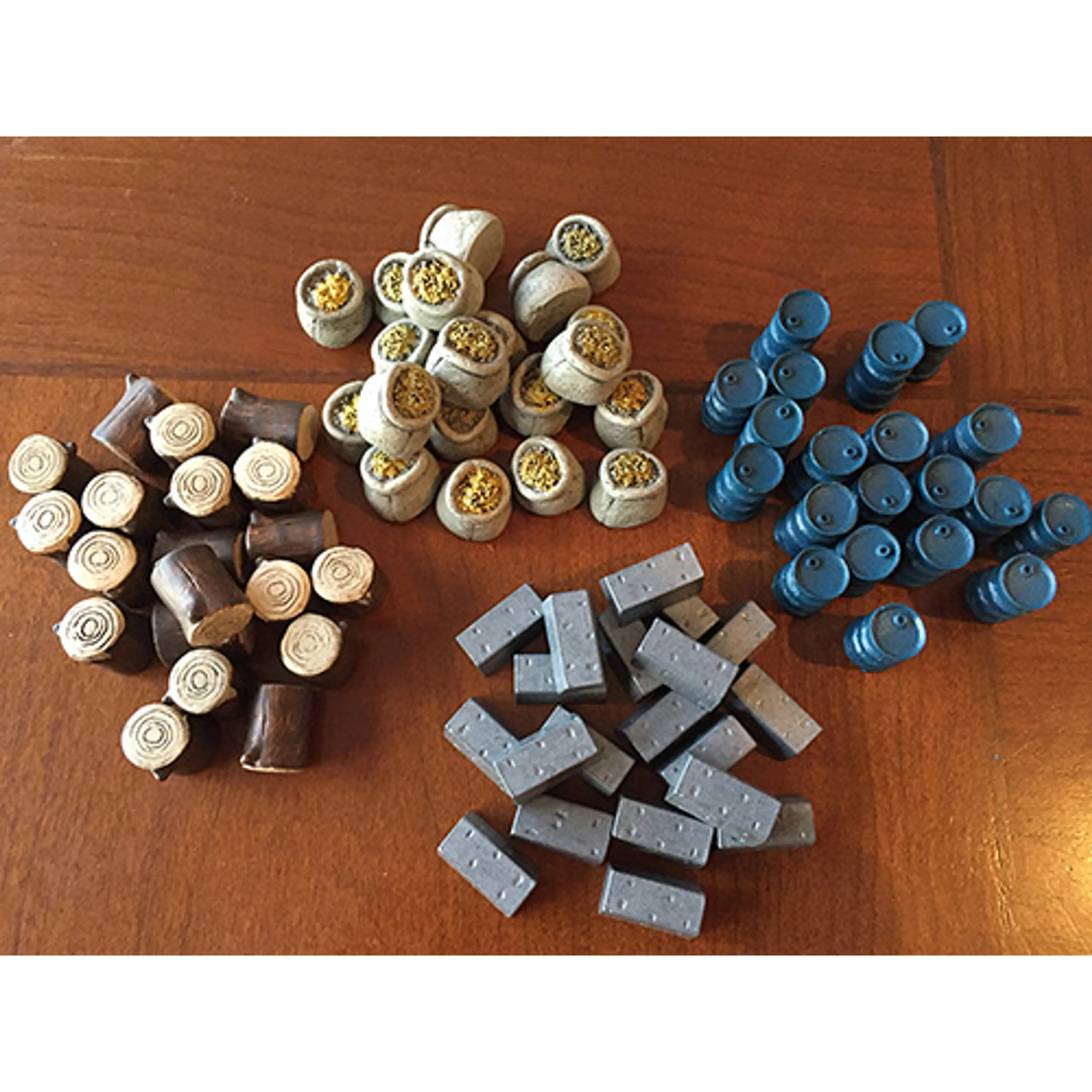 Namesto običajnih lesenih žetonov ta komplet vključuje 80 realističnih, 3D oblikovanih virov, ki simulirajo dejanske materiale, s katerimi se srečujete v igri.