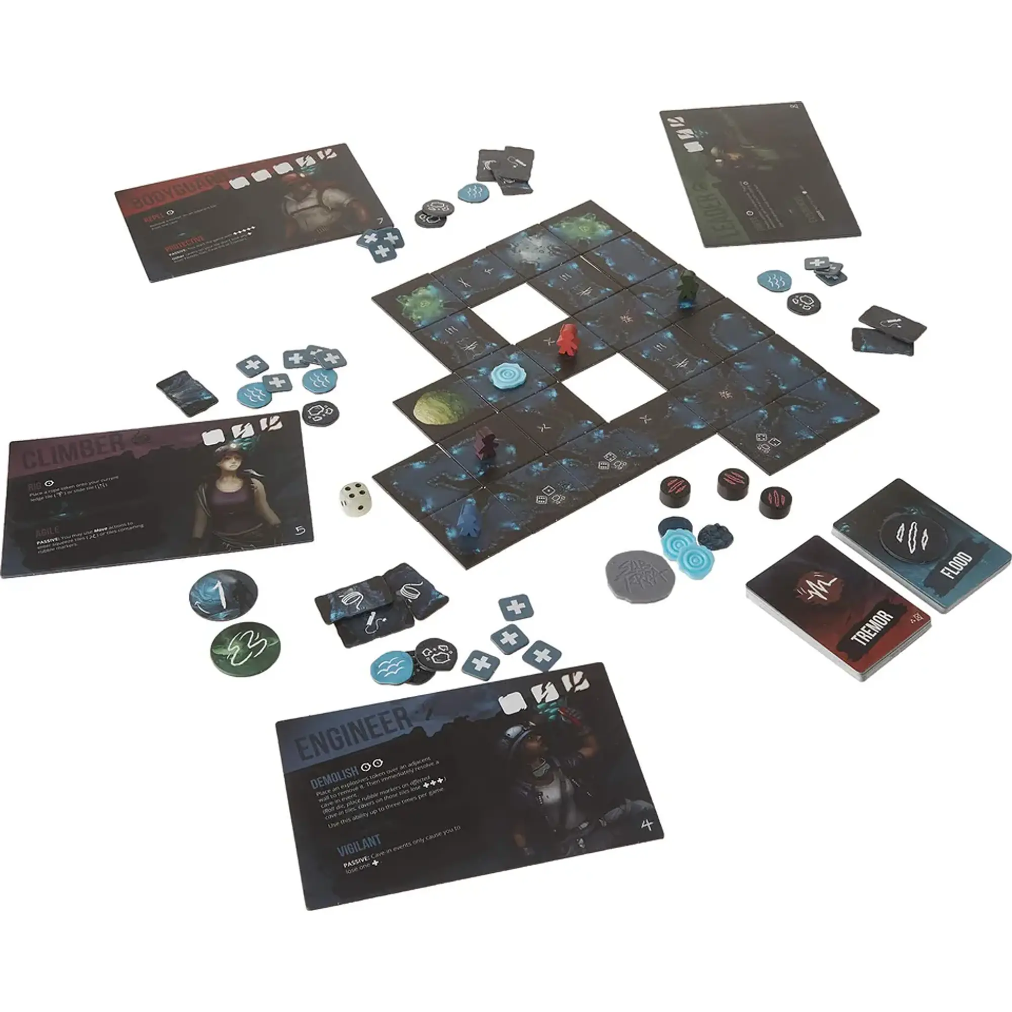 Igralci postopoma odkrivajo sistem jam s premikanjem in vlečenjem naključnih plošč, pri čemer morajo najti izhod. Vsak igralec ima na svoji potezi 2 akcijska točki (npr. premik, raziskovanje, zdravljenje) in lahko tvega dodatno akcijo s preizkusom, a ob neuspehu dobi poškodbo. Igra vključuje figure grozot, ki se po potezah premaknejo proti najbližjemu igralcu. Ob koncu vsake runde se vlečejo kartice nevarnosti (poplave, plini, kamniti podori…), ki dodatno ogrožajo igralce in blokirajo poti. Osem specialistov (npr. izvidnik, inženir, geolog, medic) ima edinstvene sposobnosti, kot so izogibanje grozotam, postavljanje dinamitov ali zdravljenje ekipnih članov.